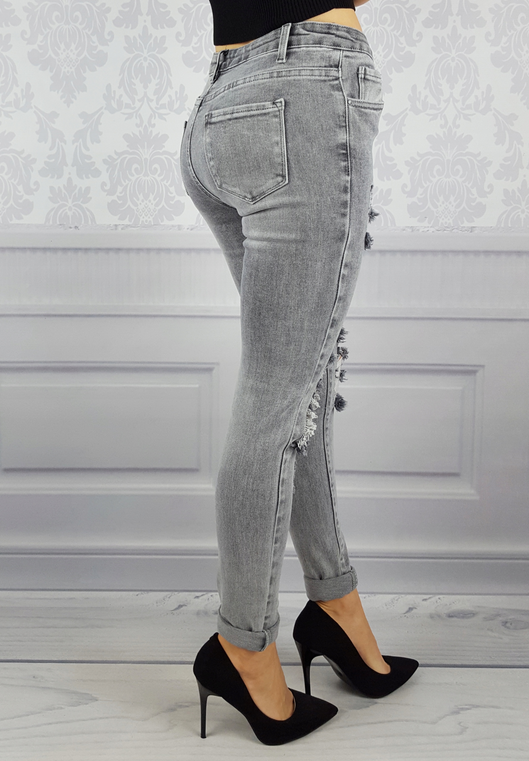 Отличные серые брюки с дырками. Идеально подходят для спортивной обуви, но они также хорошо сочетаются с обувью на высоком каблуке, придавая характер элегантному образу. Благодаря своей универсальности они подходят практически к любому стилю. Гибкий материал подчеркивает женскую фигуру. Брюки приталенные и тянутся. Подчеркните свои женственные формы! Сделайте свой повседневный образ уникальным. Брюки имеют карманы с обеих сторон.