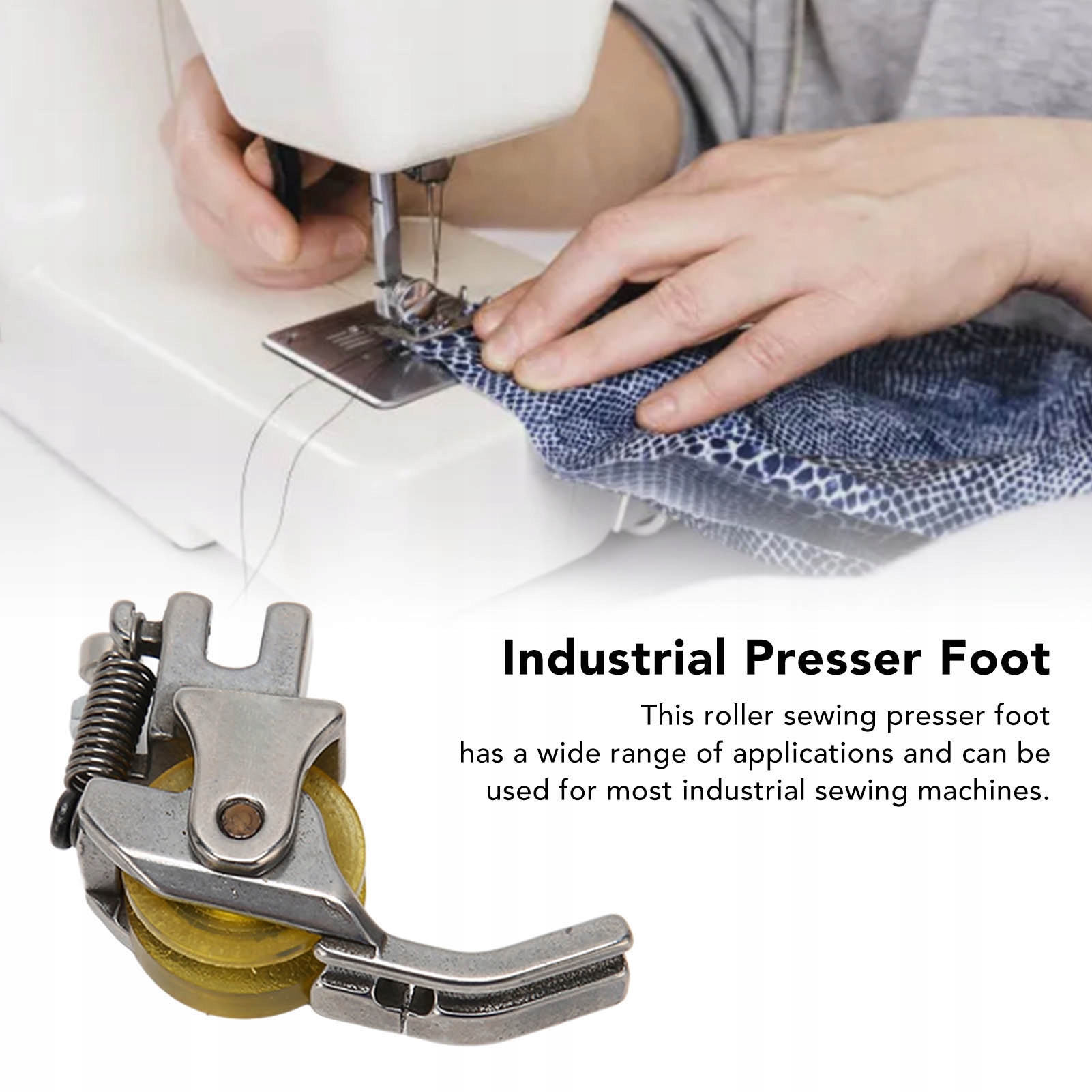 4. Широкое применение: эта роликовая прижимная лапка имеет широкий спектр применения и может использоваться на большинстве промышленных швейных машин.