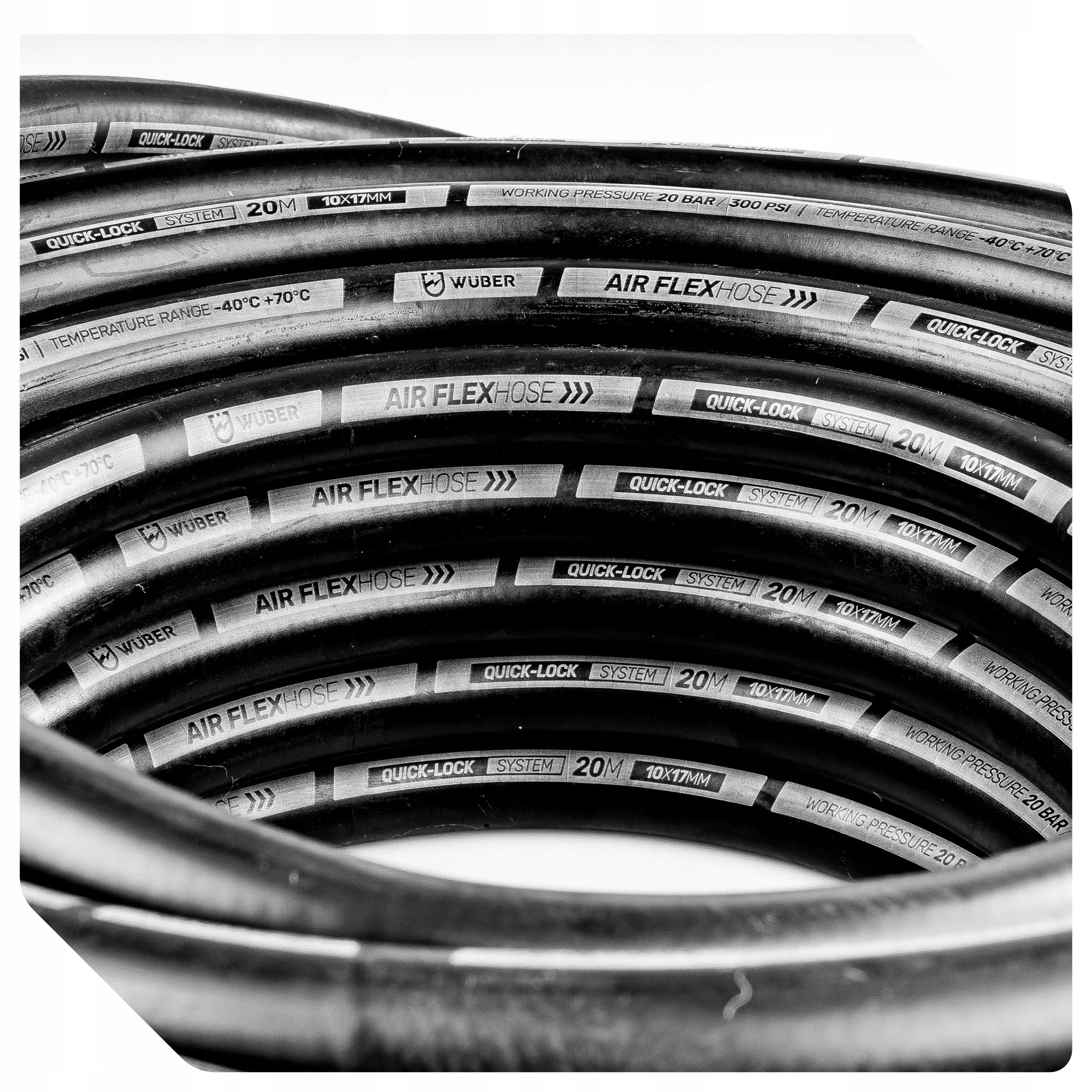 ШЛАНГ ПНЕВМАТИЧЕСКИЙ РЕЗИНОВЫЙ 20 М 10х17 ММ ТЕСННЫЙ ДЛЯ КОМПРЕССОРА WUBER