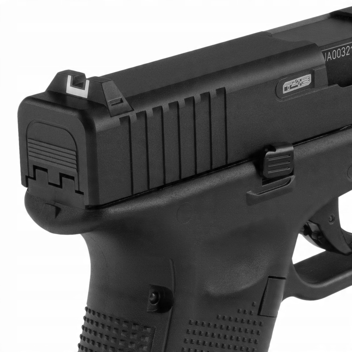 Оружие имеет механические прицельные приспособления с белой маркировкой (целик), отвечающие за более быструю и инстинктивную прицеливание. мушка и целик, что особенно полезно при стрельбе в условиях недостаточной освещенности.