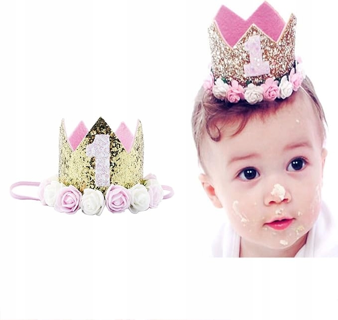 - Блестящий венок на день рождения украшен очаровательными красочными искусственными цветами, , которые выглядят красиво и особенным. Золотая парчка корона. из золотых блесток, розовой подкладки и немного элегантности.