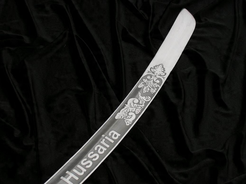 Клинок представленной реплики изготовлен из высококачественной толеданской стали. На одной стороне клинка выгравирована надпись «Виват Гуссария» и растительные мотивы по обеим сторонам надписи. Другая сторона лезвия гладкая. Довольно тяжелая, почти полностью закрытая ручка. Головка рукоятки выдвинута вперед. Клинок имеет так называемую отделку. с ручкой. Это оружие идеально сбалансировано. Считается лучшей кавалерийской саблей в мире.