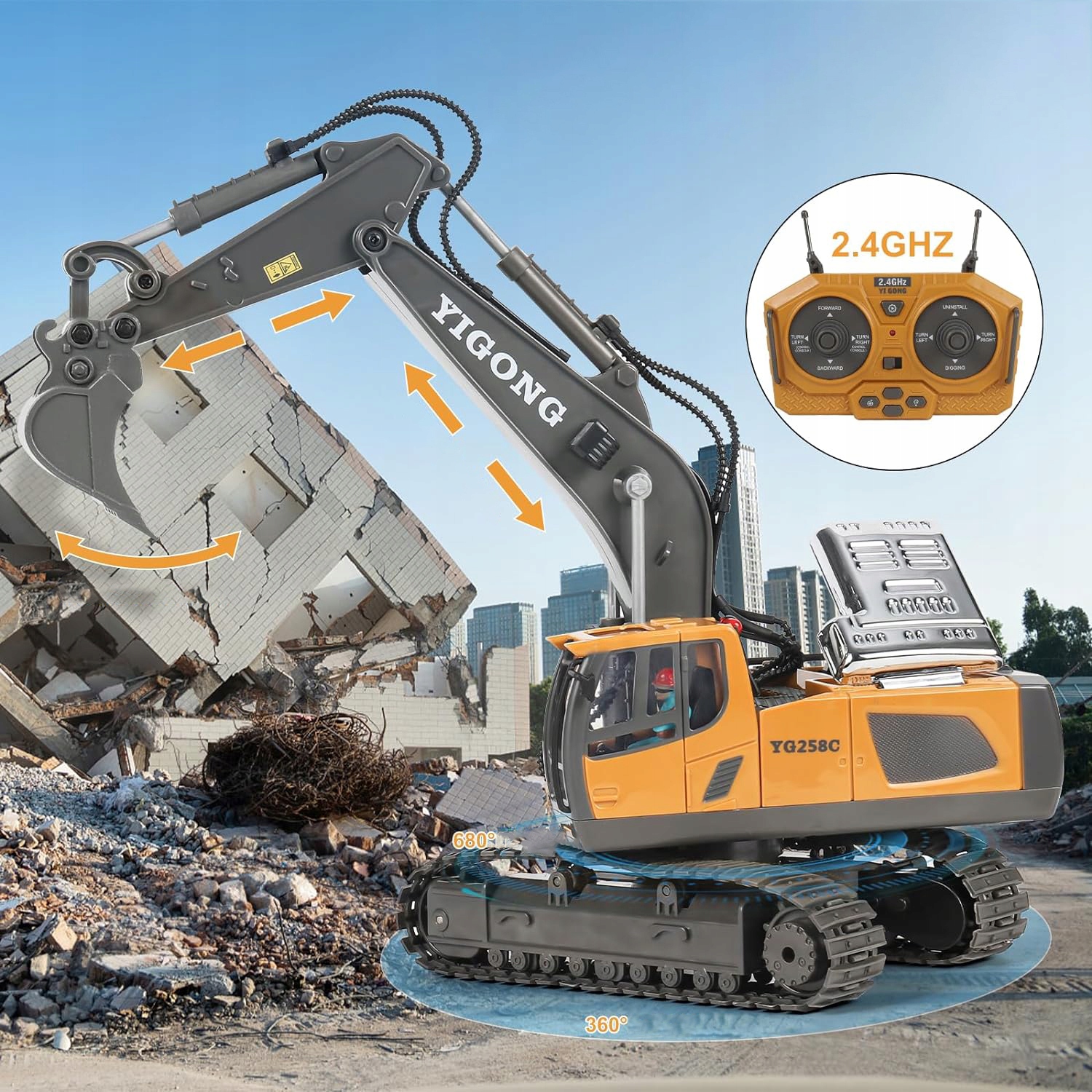 ✅【Больше развлечений на свежем воздухе】: 11-канальный экскаватор FC с поворотом вперед/назад, поворотом влево/вправо, функцией подъема вверх и вниз для копания и перемещения рыхлого песка, вращением на 360° на месте и Поворот кабины на 680° (340° в каждом направлении), не беспокойтесь о трудностях при запуске, включите демонстрационную кнопку, этот экскаватор будет копать сам.