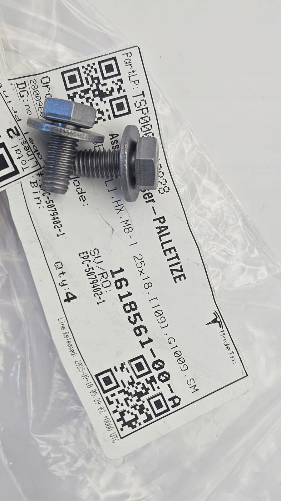 ОРИГИНАЛЬНЫЙ ВИНТ Tesla S X M8-1.25X18,[109],G1009,SM