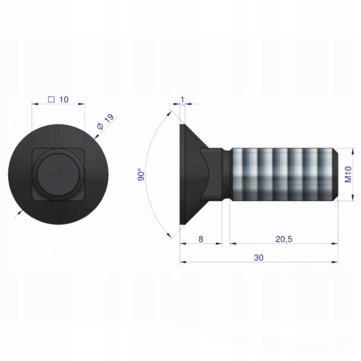 Винт плуга, поддерживаемый сошниками M10x35mm DIN 608 10,9 с гайкой Waryński 608101030