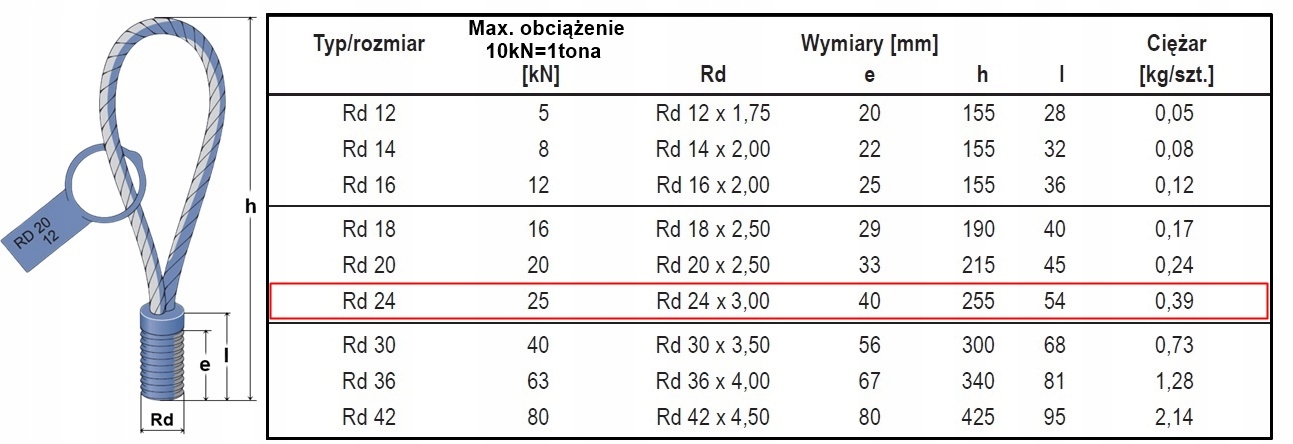 Гвинт з тросом Rd24 2.5T ТРАНСПОРТНА ПЕТЛЯ