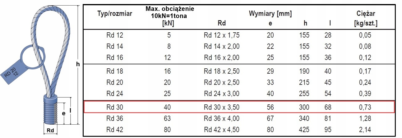 ИЗГОТОВЛЕНИЕ: Веревочные петли с резьбой для подъема только в поперечном направлении до 45°, изготовлены из стальных тросов, плотно зажатых в резьбовом соединителе в соответствии со стандартом ISO/DIN. . Выпускаются в стальном исполнении с гильзой с круглой резьбой - типа Rd. При креплении он входит в постоянно вставленное в сборный элемент стальное анкерное гнездо той же формы и размера резьбы. Доступны в исполнениях ДОР: 0,5-12,5 тонны с круглой резьбой Рд12 - Рд52.