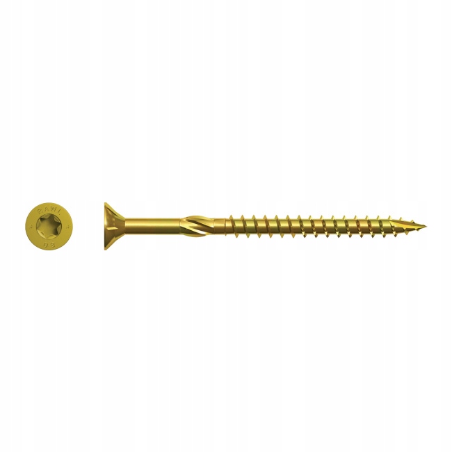 Представленный шуруп Dial для твердых пород дерева представляет собой разновидность специально подготовленного шурупа из прочной стали с характерным гнездом на головке. Саморезы предназначены для крепления и соединения элементов деревянных конструкций. Их установка не вызывает затруднений, так как гнездо TORX обеспечивает надежную фиксацию отвертки и быструю установку. Наконечник самосверлящего шурупа защищает деревянные элементы от раскалывания и растрескивания, а также исключает необходимость предварительного сверления отверстий. Благодаря высокой прочности и твердости шуруп подходит для любого типа древесины, даже очень твердой. Работа с таким типом саморезов быстрая и эффективная, а соединения деревянных элементов получаются долговечными и прочными. В нашем предложении также есть винты других размеров.