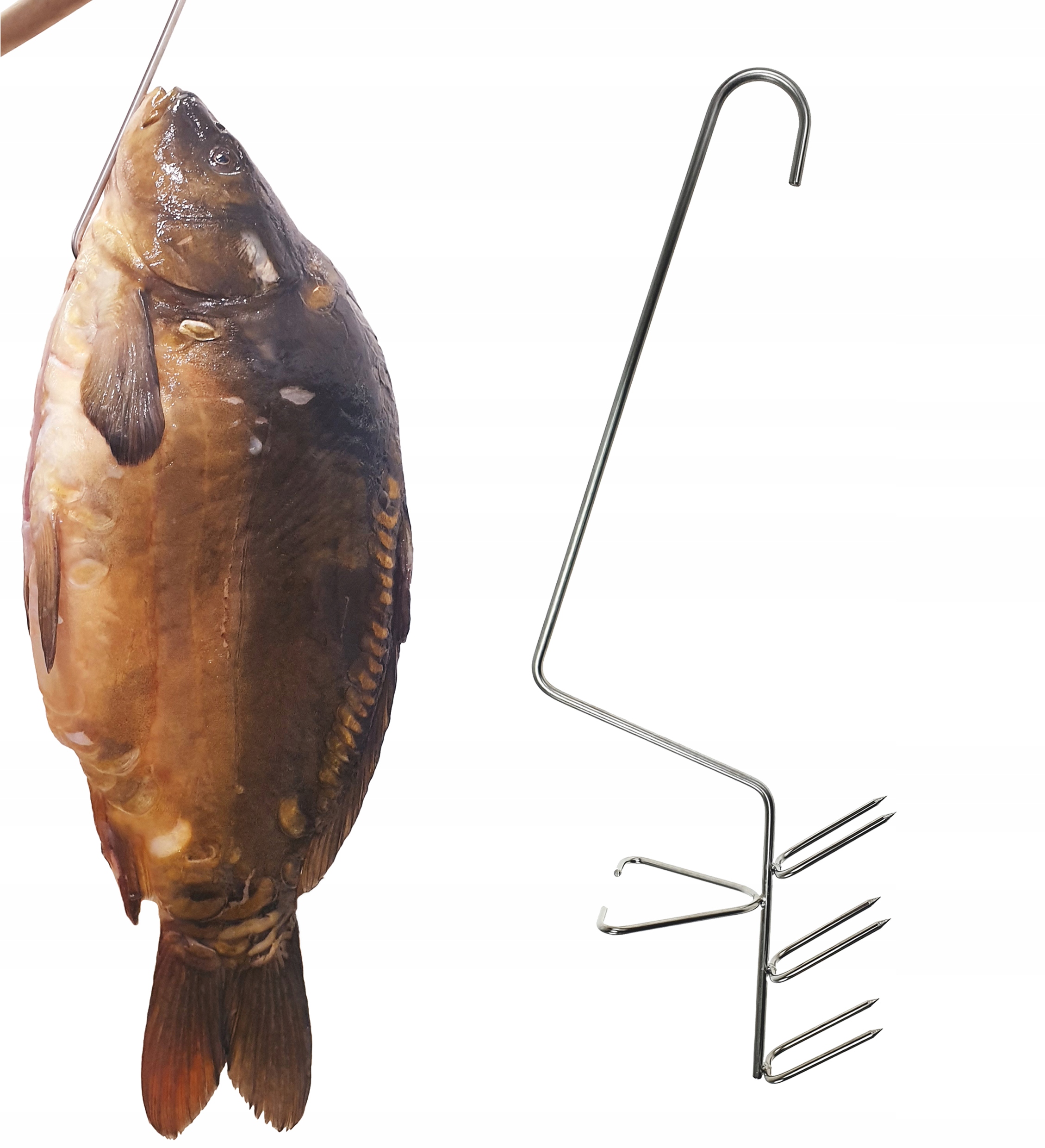 Крючок специально разработан для копчения крупной рыбы с головой и более, в основном из семейства карповых, белого амура или карпа из-за формы рыбы, широкий сзади и сплющенный с боков.