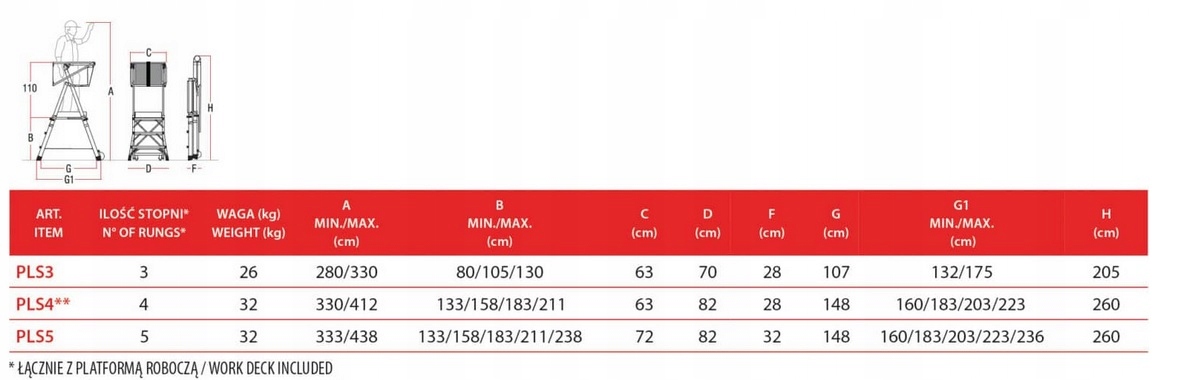 Просматривая «РАБОЧАЯ ПЛАТФОРМА H. ПЛАТФ. 130/238 СМ», вы можете быть уверены, что данный товар из каталога «Лестницы» будет доставлен из Польши и проверен на целостность. В цене товара, указанной на сайте, учтена доставка из Польши. Внимание!!! Товары для Евросоюза, согласно законодательству стран Евросоюза, могут отличаться упаковкой или наполнением.