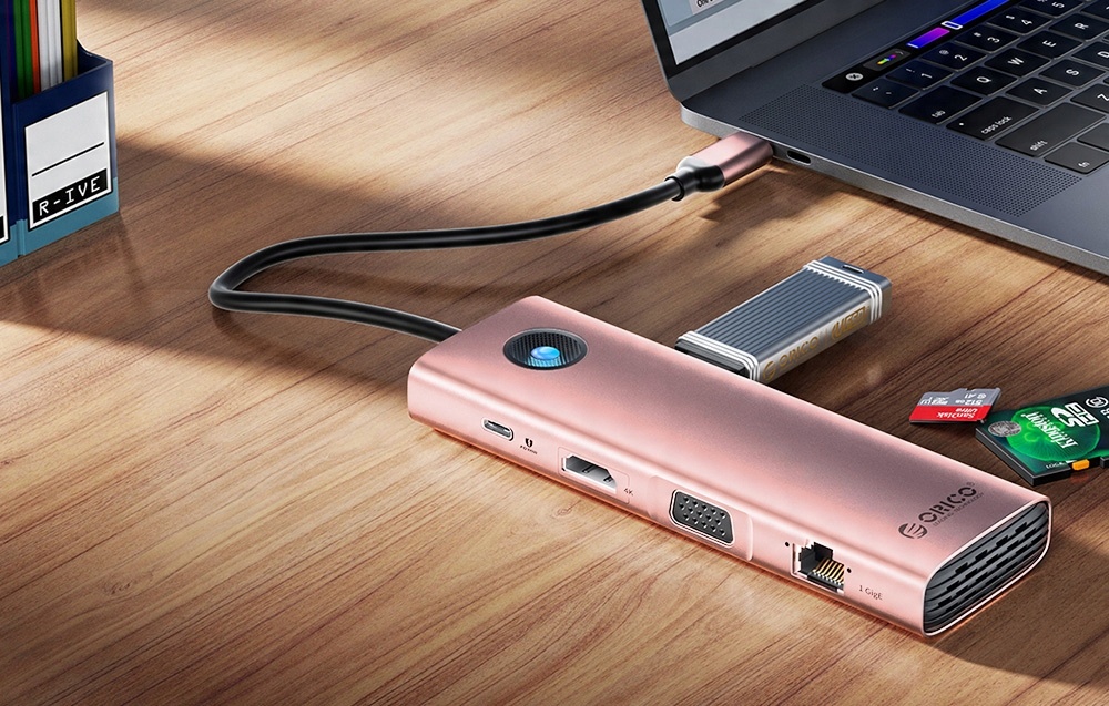 Док-станция Orico HUB 10-в-1 USB-C, HDMI, 3xUSB, SD/TF, аудио (розовое золото)