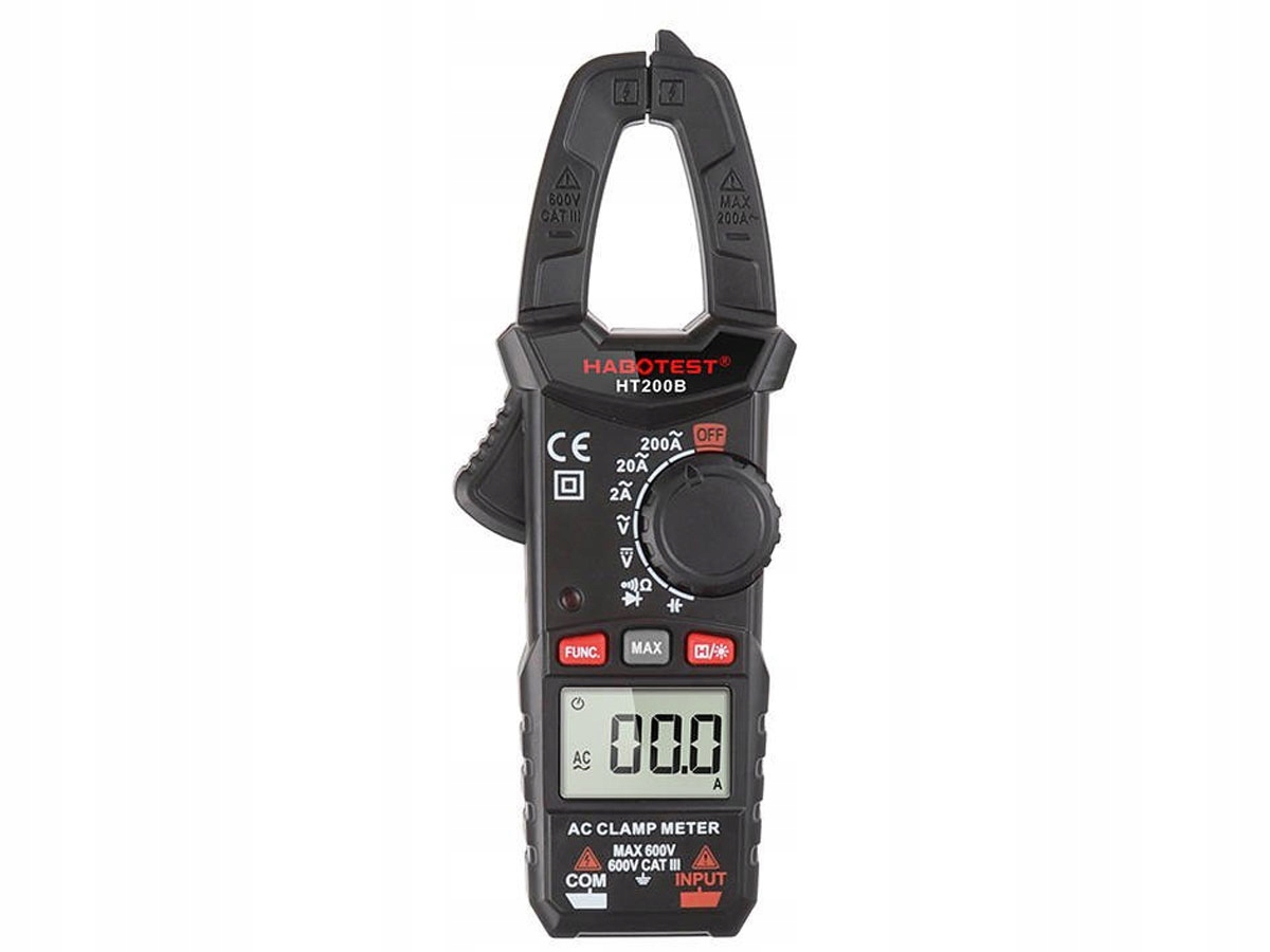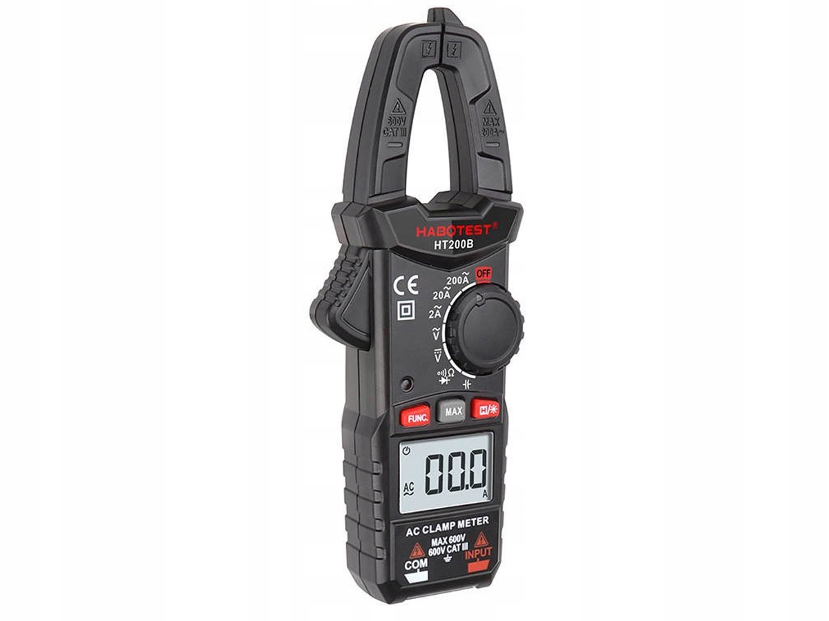 цифровой счетчик HT200B обеспечивает точное измерение различных параметров. Он оснащен освещенным HD -дисплеем и челюстями, размер которого составляет до 18 мм. Несмотря на его небольшой размер, это впечатляет функциональностью. Для его источника питания 2 AAA 1,5 В против.