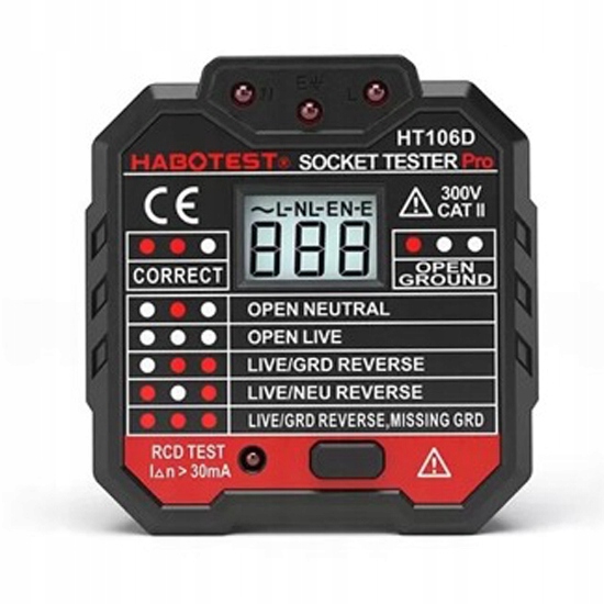 Индикатор светодиод , помещенный в верхнюю часть устройства, сообщит вам о любых проблемах. Если тестер обнаруживает некоторую нерегулярность , светодиоды будут освещаться в определенном бине. Благодаря этому вы быстро узнаете, например, об замене кабелей плюс/минус, отсутствие заземления или без кабеля. Используя ht106d , вы также можете выполнить простой тест RCD.