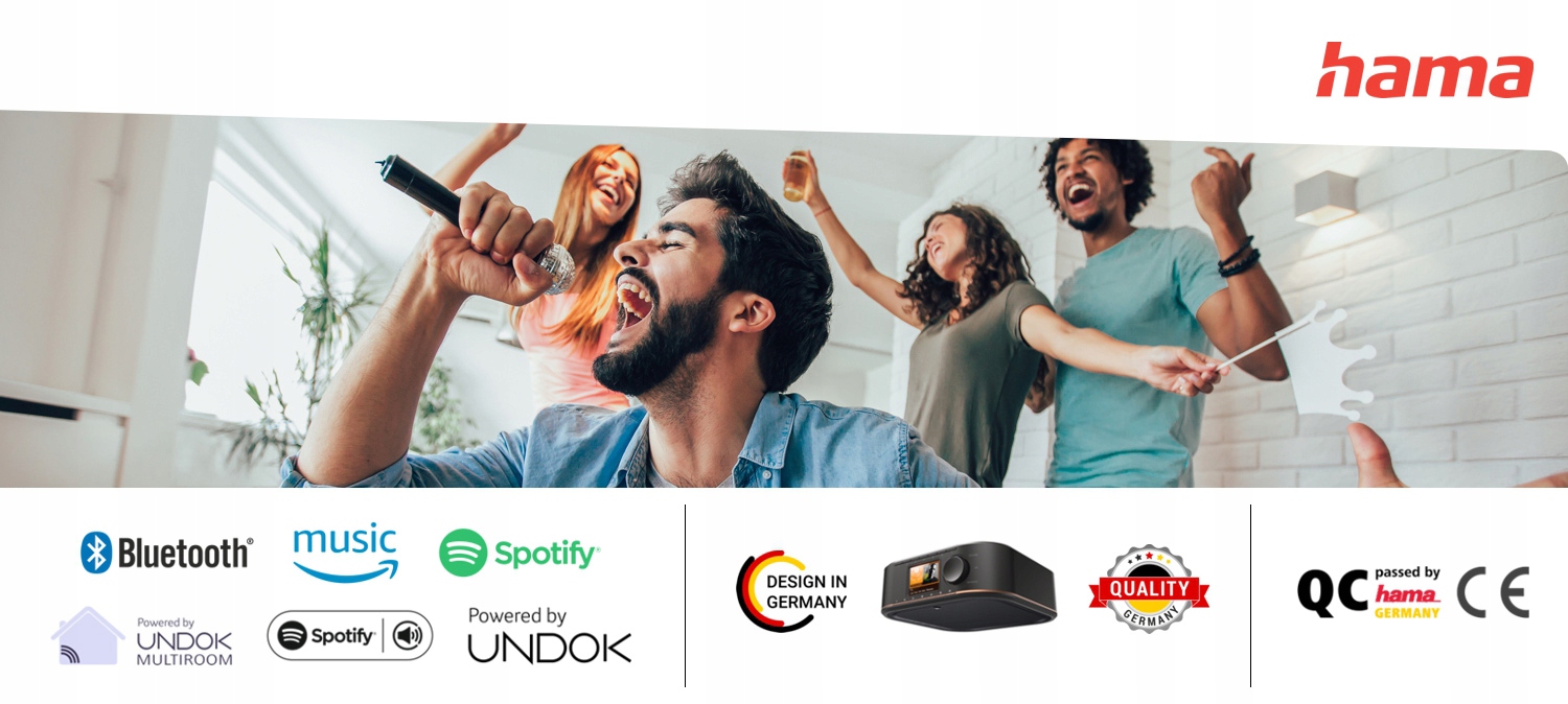 Обширное радио Hama обеспечивает идеальный прием как аналоговых и цифровых сигналов DAB и DAB+, а также онлайн -радиостанции. Выберите из тысяч станций и подкаста. Вы также можете слушать музыку со своего смартфона и Spotify, соединяясь с Bluetooth. Кроме того, у вас есть доступ к вашей учетной записи на Amazon Music.