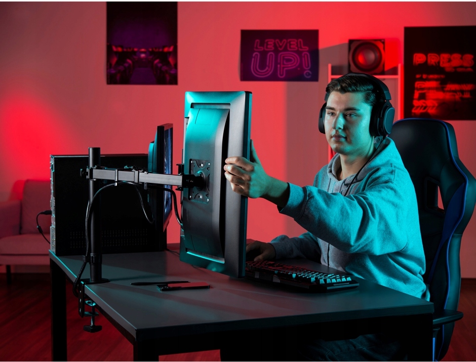 Monitor Holder является идеальным решением для людей, которые ценят эргономику и минимализм во время работы. Это будет идеально, если у вас есть два монитора. Тебе нравится заказ? Ставки на большее пространство для действий и отсутствие беспокоящих кабелей.
