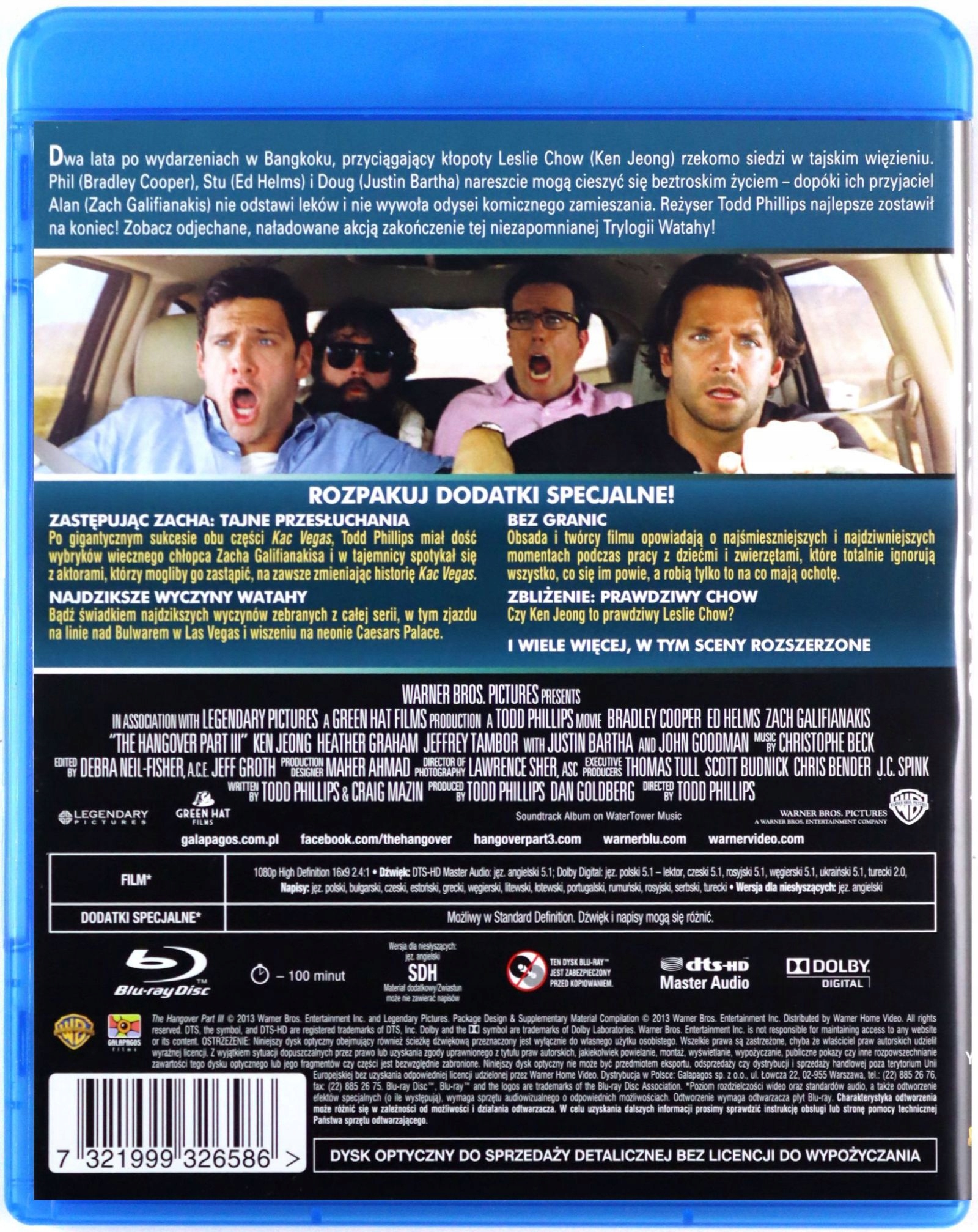 Оплачивая «HANGING VEGAS III (BLU-RAY)», вы можете быть уверены, что данное изделие из каталога «Комедии» будет доставлено из Польши и проверено на целостность. В цене товара, указанной на сайте, учтена доставка из Польши. Внимание!!! Товары для Евросоюза, согласно законодательству стран Евросоюза, могут отличаться упаковкой или наполнением.
