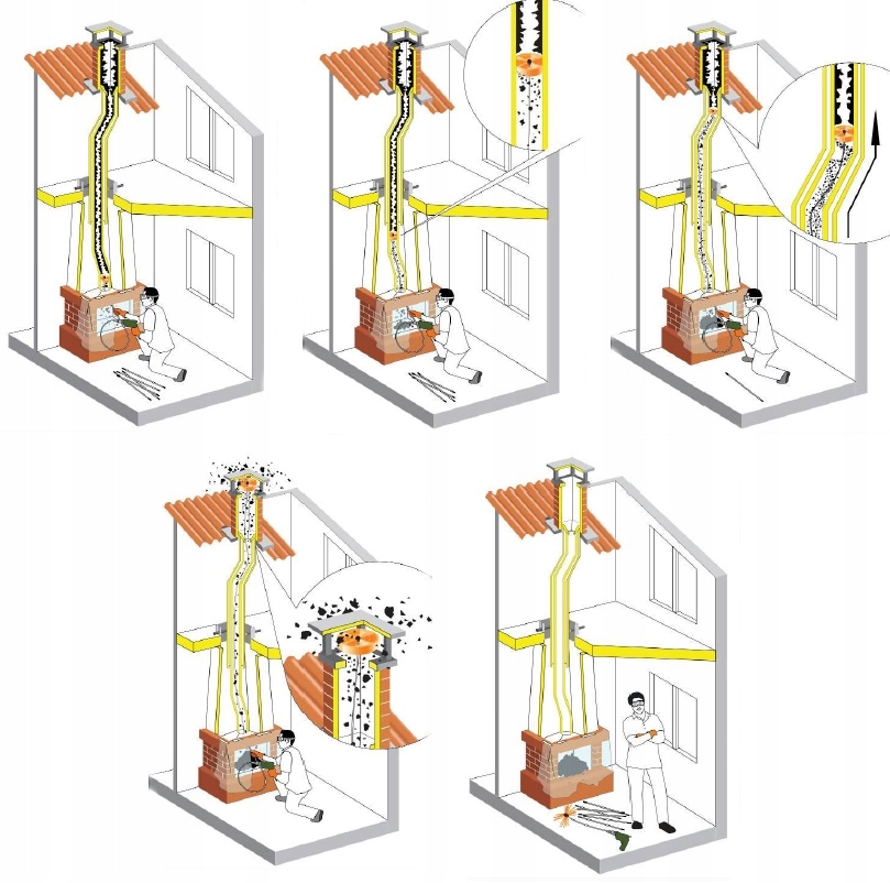 Чистка дымохода снизу вверх, не придется лезть на крышу дома