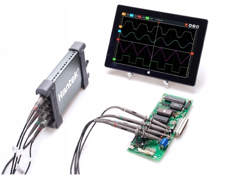 hantek6000bc b> - это новая серия цифровых осциллоскопов «Компьютер» осциллоскопические вложения, подключенные к Копмутере через порт USB. Осциллографы из серии Hantek6000BC имеют аналоговый вход четыре канала . Отбор проб в реальном времени - 1GSA/s . Все устройство заключено в металлический корпус. Программное обеспечение для управления осциллографом имеет ряд функций, которые облегчают ежедневную работу по измерениям. Программное обеспечение работает в Windows Systems, прост и прозрачно в использовании.