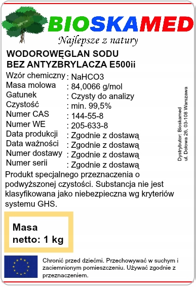 Оплачивая «ПИЩЕВАЯ СОДА Чистый бикарбонат натрия 1 кг», вы можете быть уверены, что данный товар из каталога «Прочие пищевые добавки» будет доставлен из Польши и проверен на целостность. В цене товара, указанной на сайте, учтена доставка из Польши. Внимание!!! Товары для Евросоюза, согласно законодательству стран Евросоюза, могут отличаться упаковкой или наполнением.