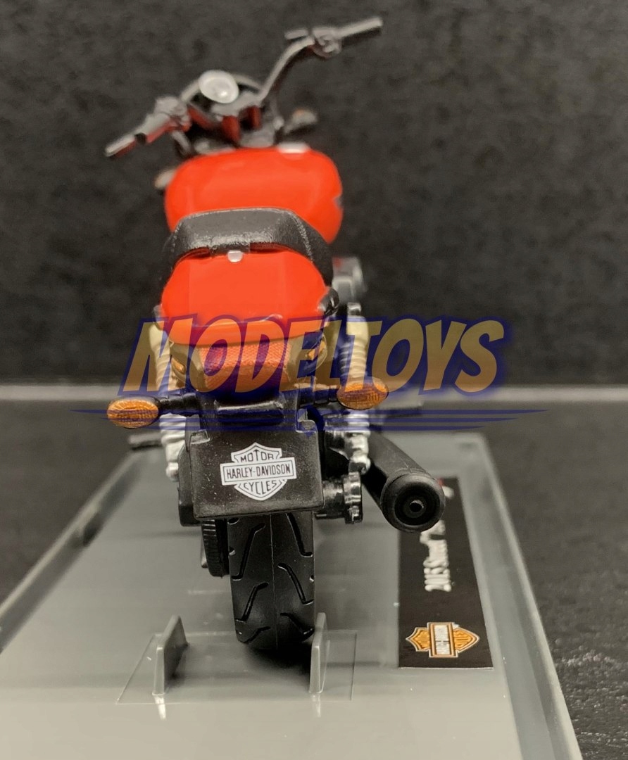 Модель мотоцикла Harley-Davidson характеризуется внимание к деталям. подробности. Имеет подвижные элементы: подставку, колеса, руль, заднюю подвеску. Съемная подставка с логотипом HD и маркировкой модели.