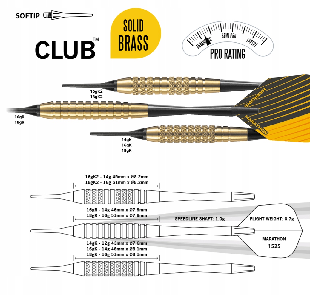 HARROWS DARTS SOFTIP CLUB BRASS 18gK