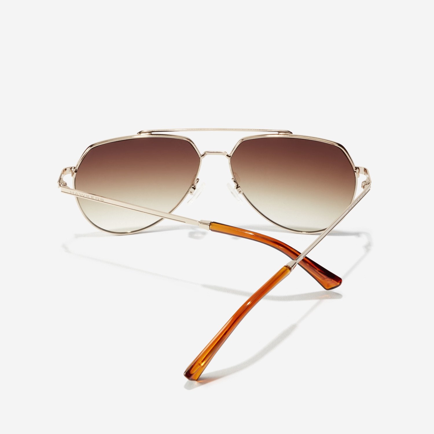 - Устаревшая классика, увеличенный размер, с коричневыми линзами и золотой оправой.