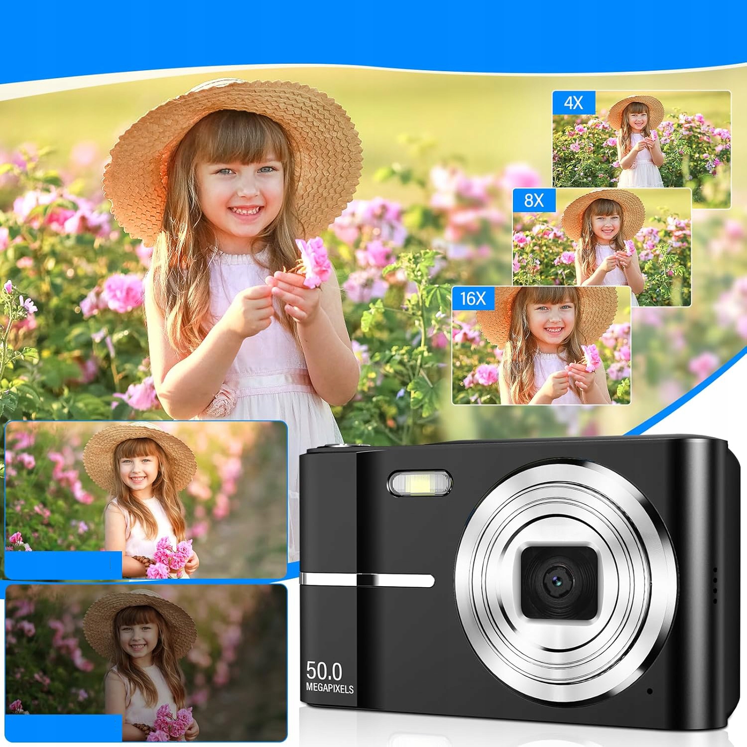 Ваша новая цифровая камера HD b> - это больше, чем обычные фотографии - это билет в мир ясных, полных жизненных воспоминаний! Представьте себе: 16-кратный Zoom представляет каждую деталь, и интеллектуальное распознавание лица делает ваши селфи и портреты всегда выглядеть идеально, даже с плохим светом, благодаря встроенной Flash Lamp .