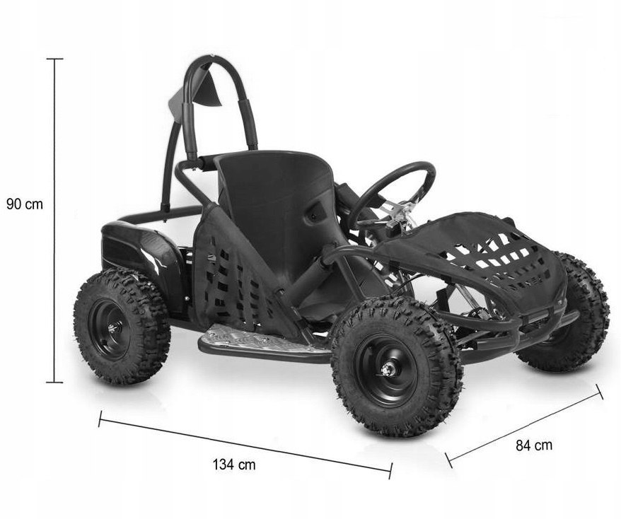 Багги контролируется педалями, правая педаль служит газом, а оставлена в качестве тормоза. На приборной панели есть зажигание с ключом.