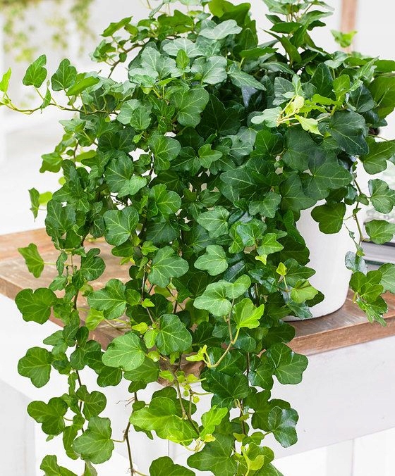 Известен как домашний плющ. Это фантастическая вечнозеленая лоза, отличающаяся чрезвычайно плотной кустистой формой. Наиболее эффектно шапка выглядит в виде свободно свисающей гирлянды. Вечнозеленые листья прекрасно сочетаются с другими видами растений. Дополнительным преимуществом является возможность очищать воздух от токсинов. Целевой размер можно регулировать путем обрезки побегов.
