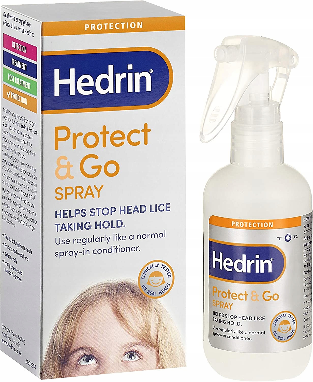 Спрей Hedrin Protect & Go следует использовать для защиты головы от заражения вшами. Клинически проверенный спрей-кондиционер, который убивает вшей до того, как они начнут заражаться. Регулярно используйте Hedrin Protect & Go при наличии вшей, особенно во время общественных мероприятий, таких как игры, вечеринки, ночевки и когда дети возвращаются в школу. Спрей Hedrin Protect & Go безопасен для кожи, защищает и питает волосы, имеет приятный фруктовый аромат апельсина и манго. «Подходит для взрослых и детей от 6 месяцев. Наносите Hedrin Protect & Go регулярно после мытья волос (не реже двух раз в неделю) в рамках обычной гигиены волос.