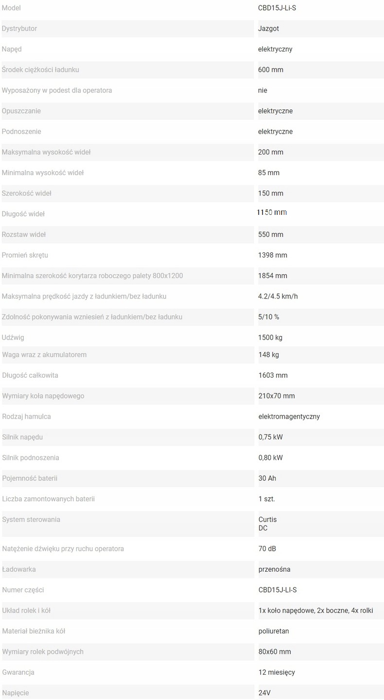Cbd 15 Palette Croller -это интеллектуальное, надежное и простое -для -использование устройства. Небольшой радиус поворота и низкий вес дали палеттеру уникальный характер. Его можно использовать в грузовых лифтах. Коляска работает тихо, не создавая неприятный шум. Благодаря высокой мощности двигателя привода, он радует его необычайную эффективность. Этот тип решения облегчает его обслуживание без дополнительного времени, необходимого для разборки корпусов, Ослон и защитников. Когда аккумулятор исчерпана, вы можете быстро снять его и заменить заряженной. Вспомогательные колеса с обеих сторон увеличивают стабильность во время вождения