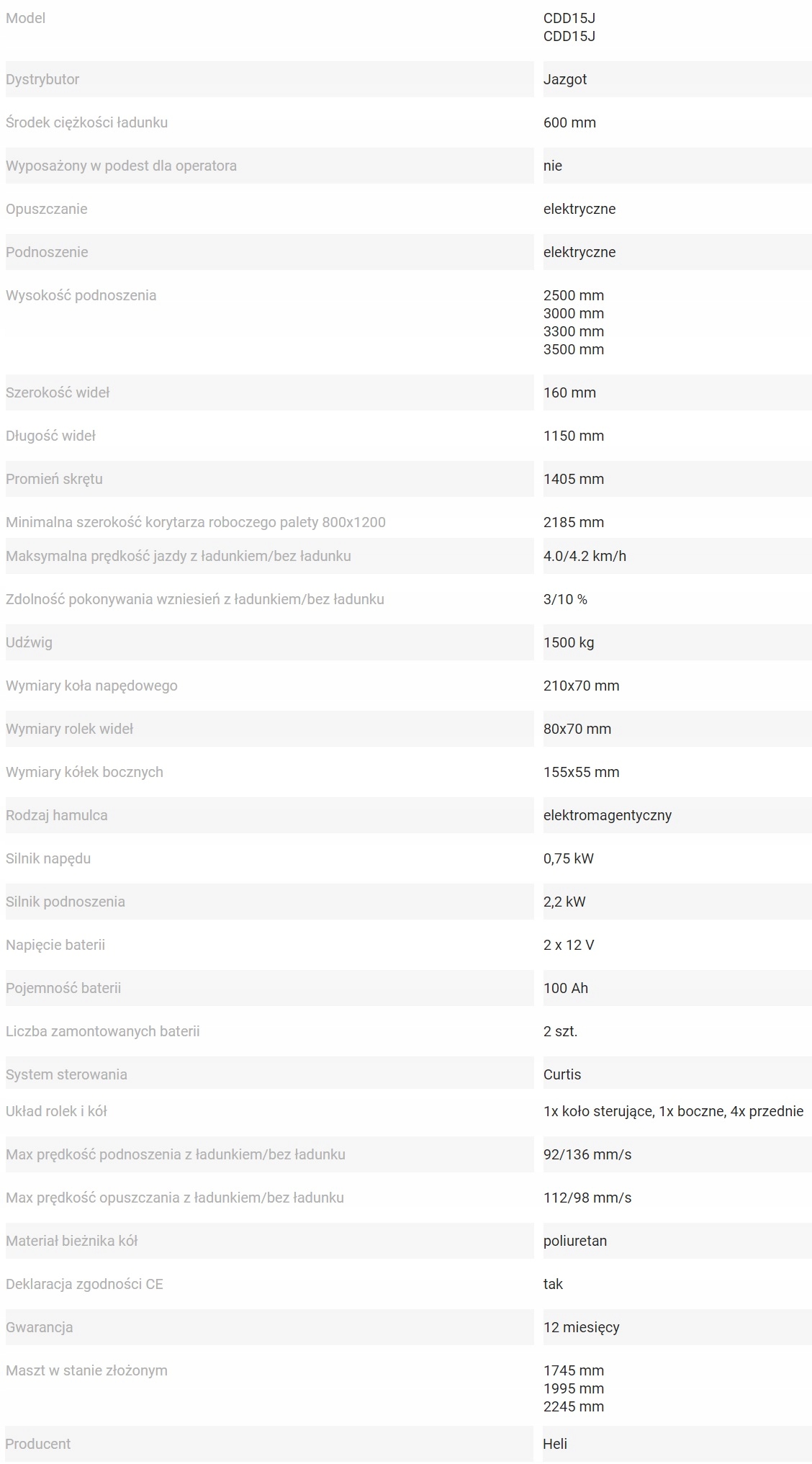 Электрическая коляска мачта 1500 кг 3000 мм - 9755.29 PLN/Net - 9755.29 PLN/Net