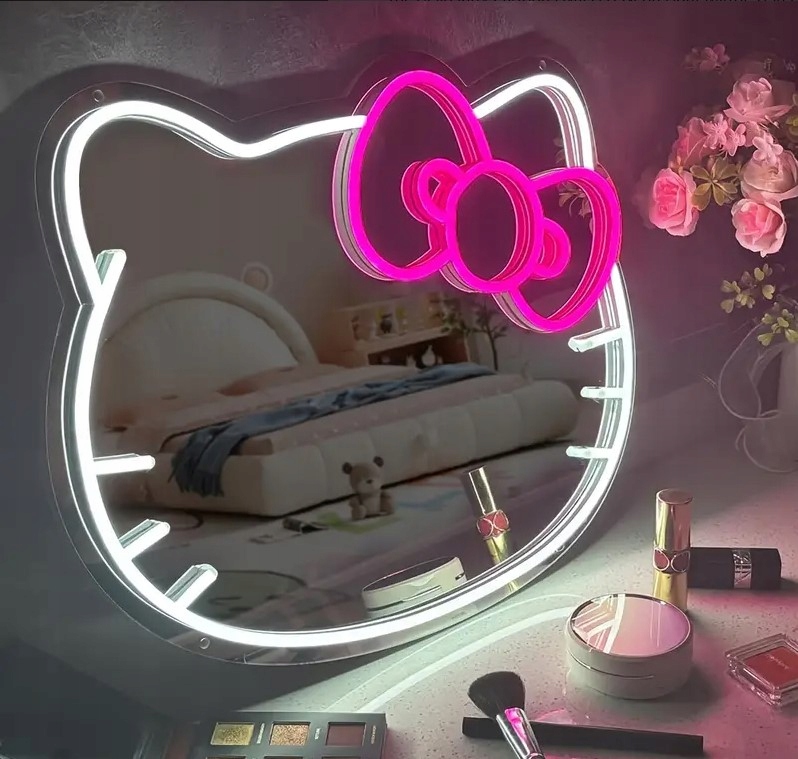 Добавьте удивительное сияние и очарование в свой интерьер со светодиодным зеркалом Hello Kitty! Удивите своих близких, гостей и себя - почувствуйте, как магия японской эстетики меняет повседневную жизнь! 💖🎀🐱