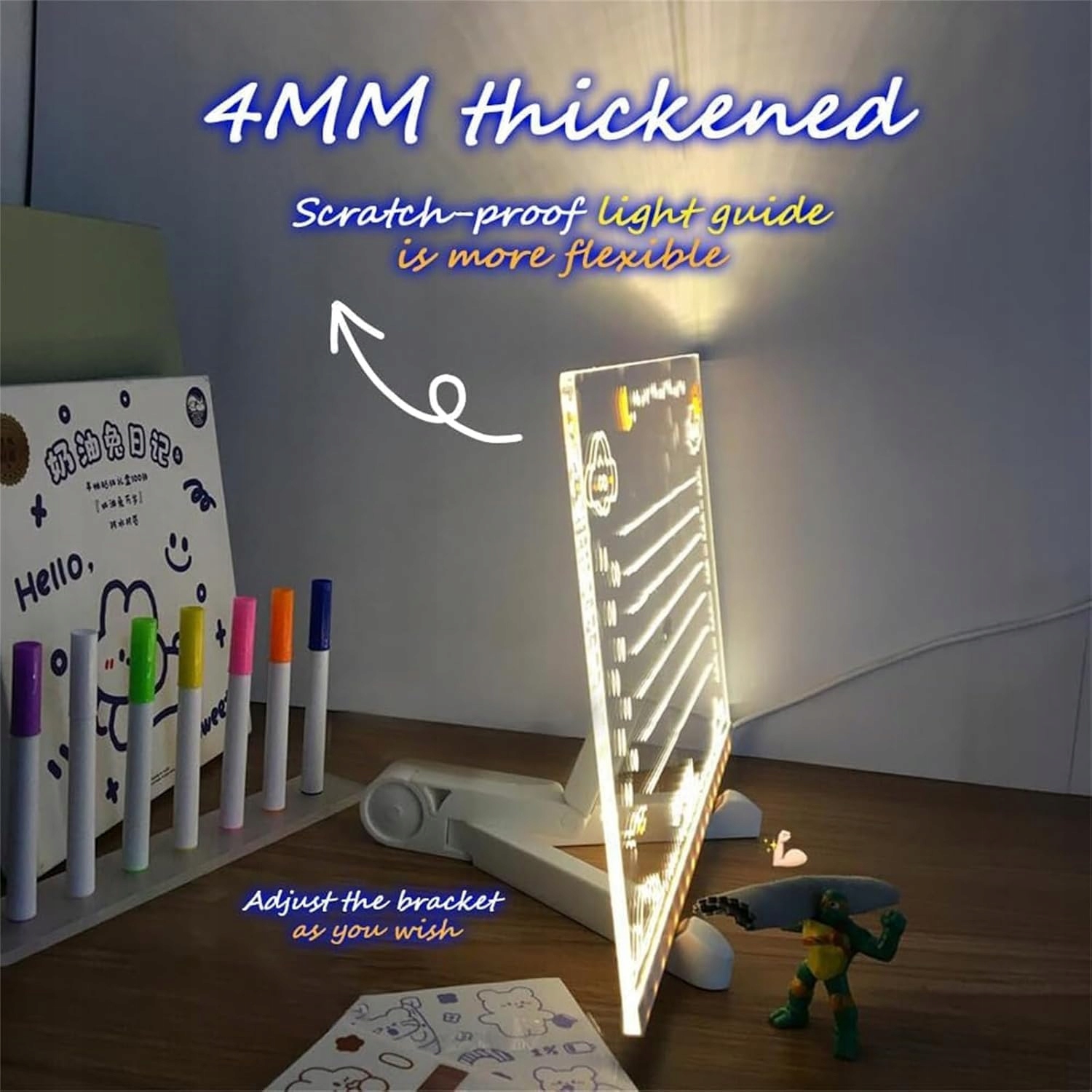 Привлекательный дизайн с подсветкой: акриловая доска объявлений со светодиодной подсветкой оснащена светящейся акриловой панелью, которая выделяет сообщения, рисунки и заметки теплым и привлекательным светом, что делает ее одновременно функциональной и визуально привлекательной.