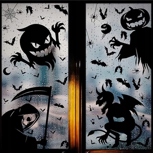 - Материал: наклейки с оконными витринами Хэллоуина сделаны из многоразового материала из ПВХ, их можно легко очистить и приклеить, их можно свободно перемещать и использовать повторно. Приклейте их на любую гладкую и плоскую поверхность, такую как автомобильное стекло, зеркала, стеклянные двери и ванную комнату.