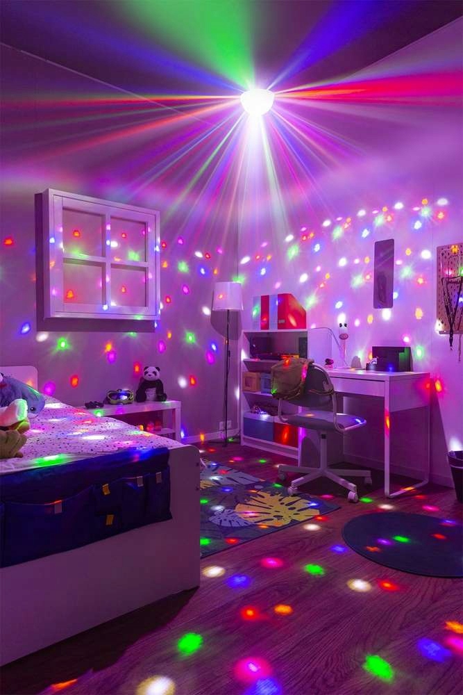 JB60R имеет 6 светодиодов красного, зеленого, синего, желтого, фиолетового и белого цветов, свет которых проходит через линзы в полусфере. При этом создается огромное количество световых лучей, которые включаются и гаснут независимо друг от друга. Поскольку светодиоды установлены на подвижной плате, лучи света циркулируют вокруг друг друга. Сочетание цветов, включение и выключение, а также движение светодиодов создают красивый эффект, освещающий окрестности.