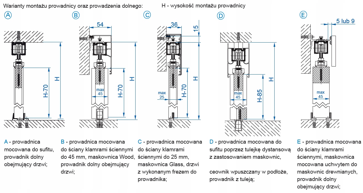 - 1 х универсальная регулируемая нижняя направляющая – удерживает дверное полотно в вертикальном положении внизу с обеих сторон;
