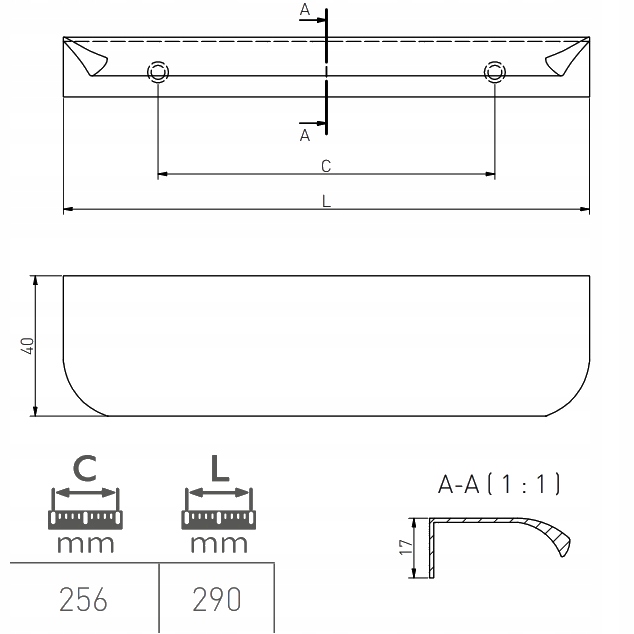 Кромкая ручка герма C-320 Ярко-матовая GTV Gold
