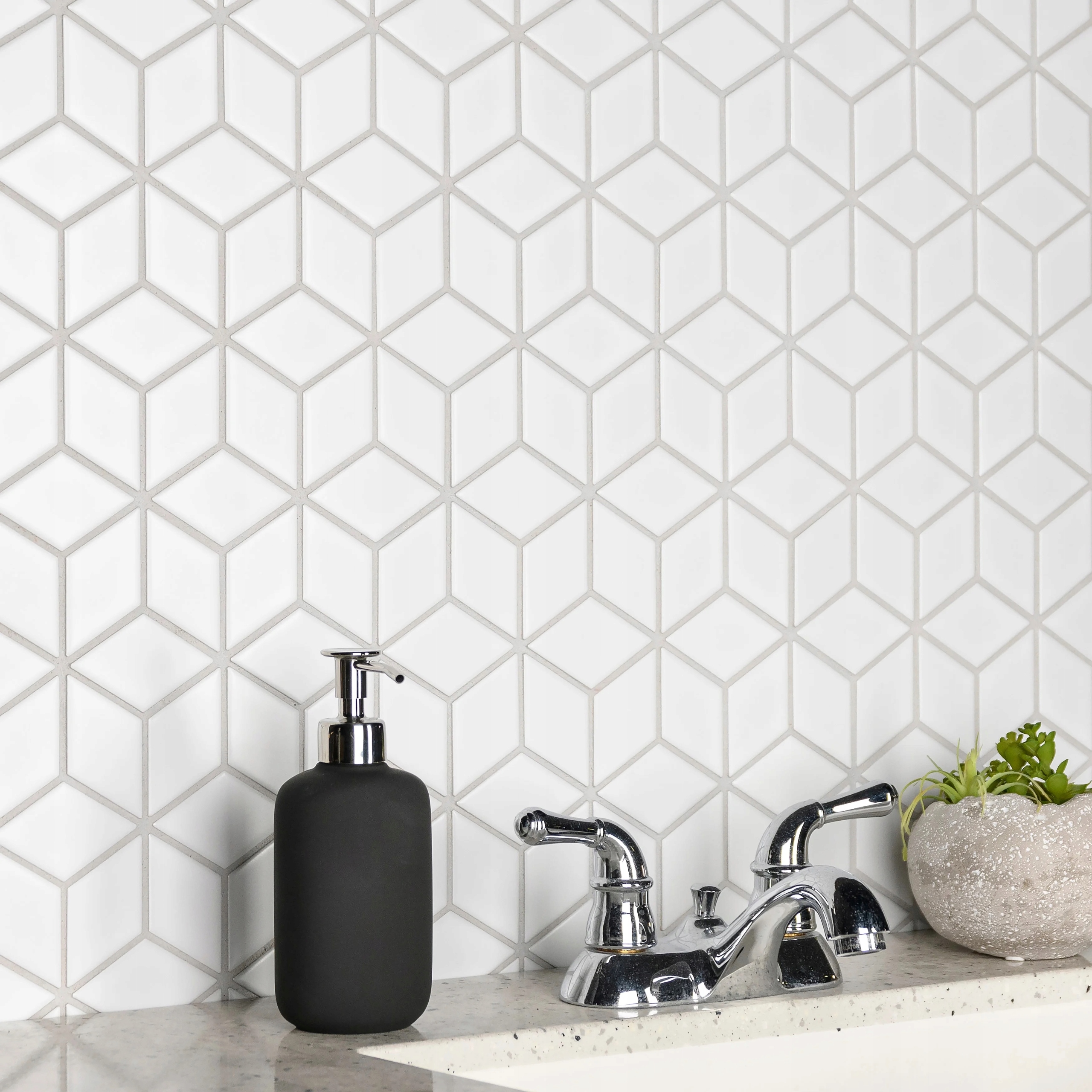 мозаика HEXAGON RHOMBUS CUBE белая матовая