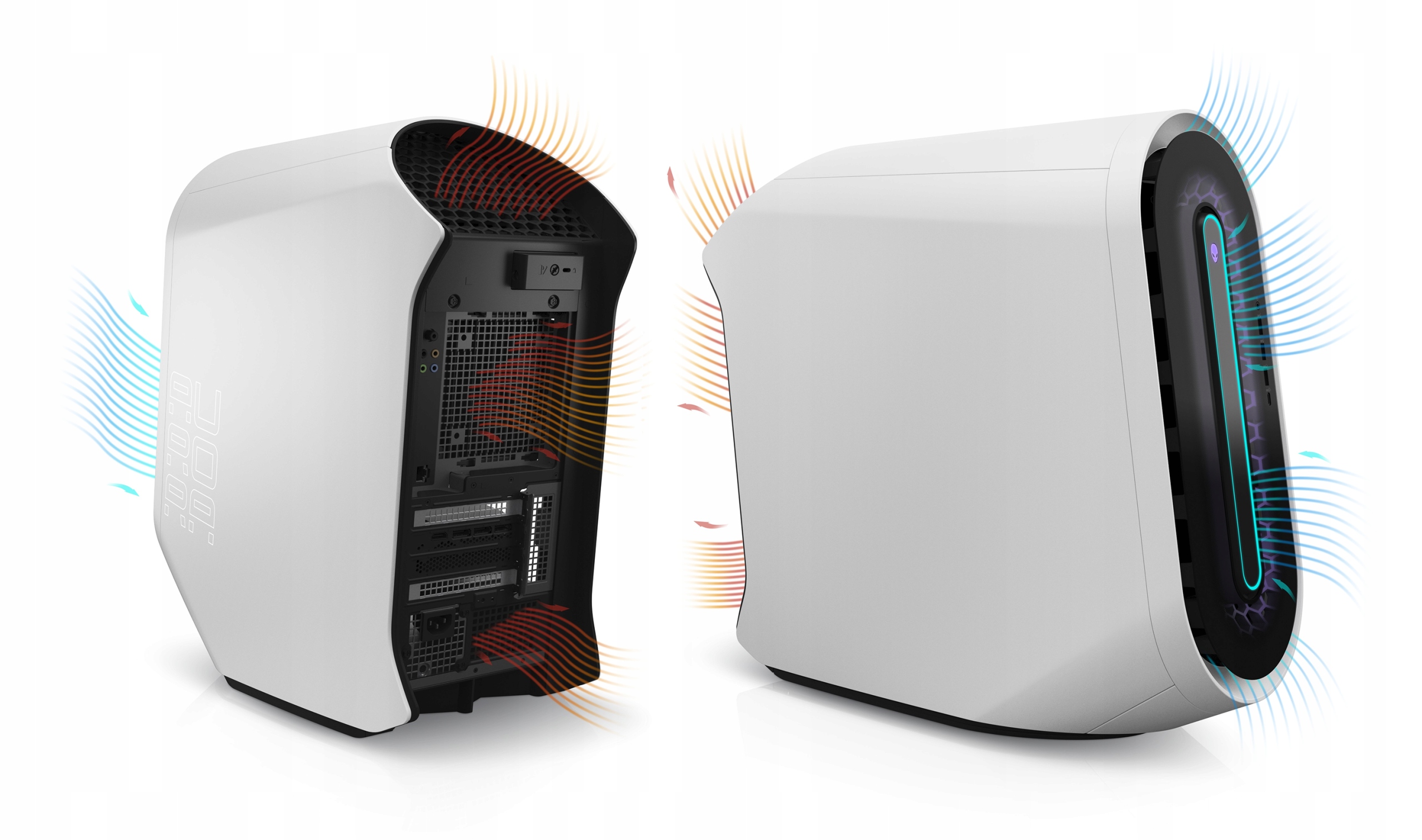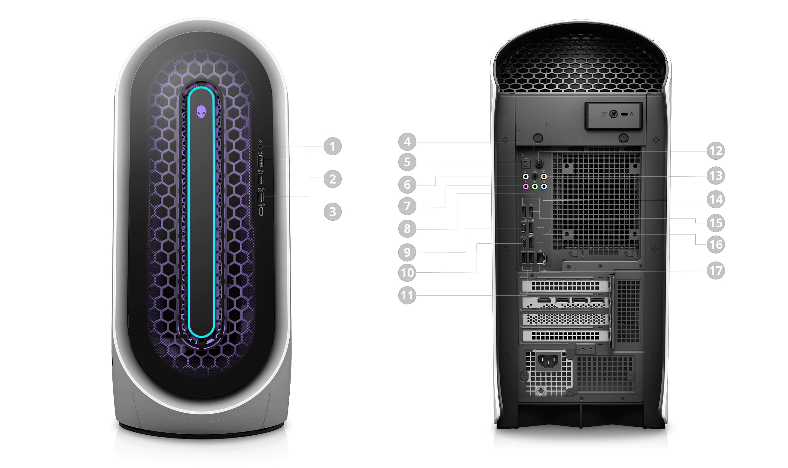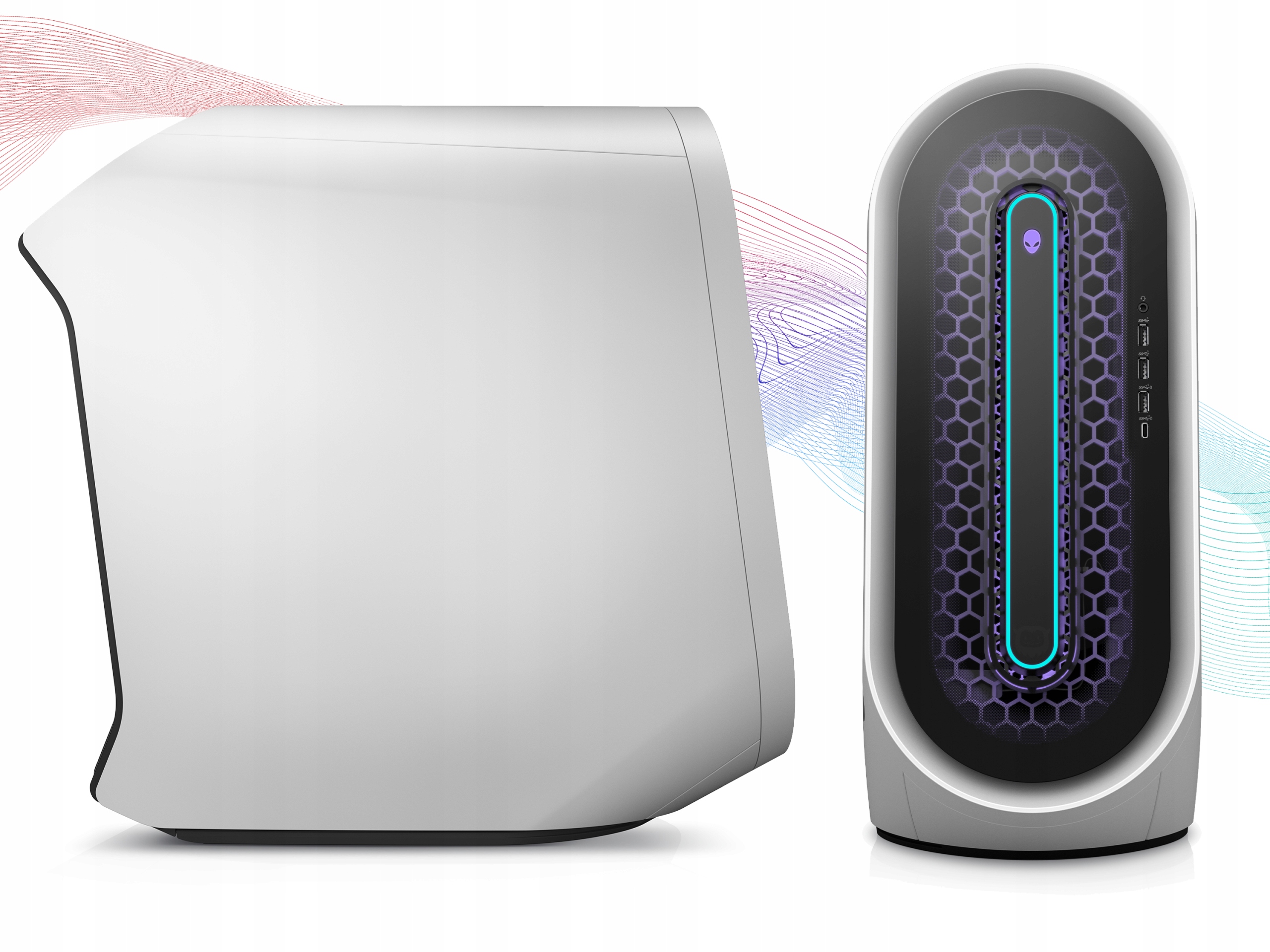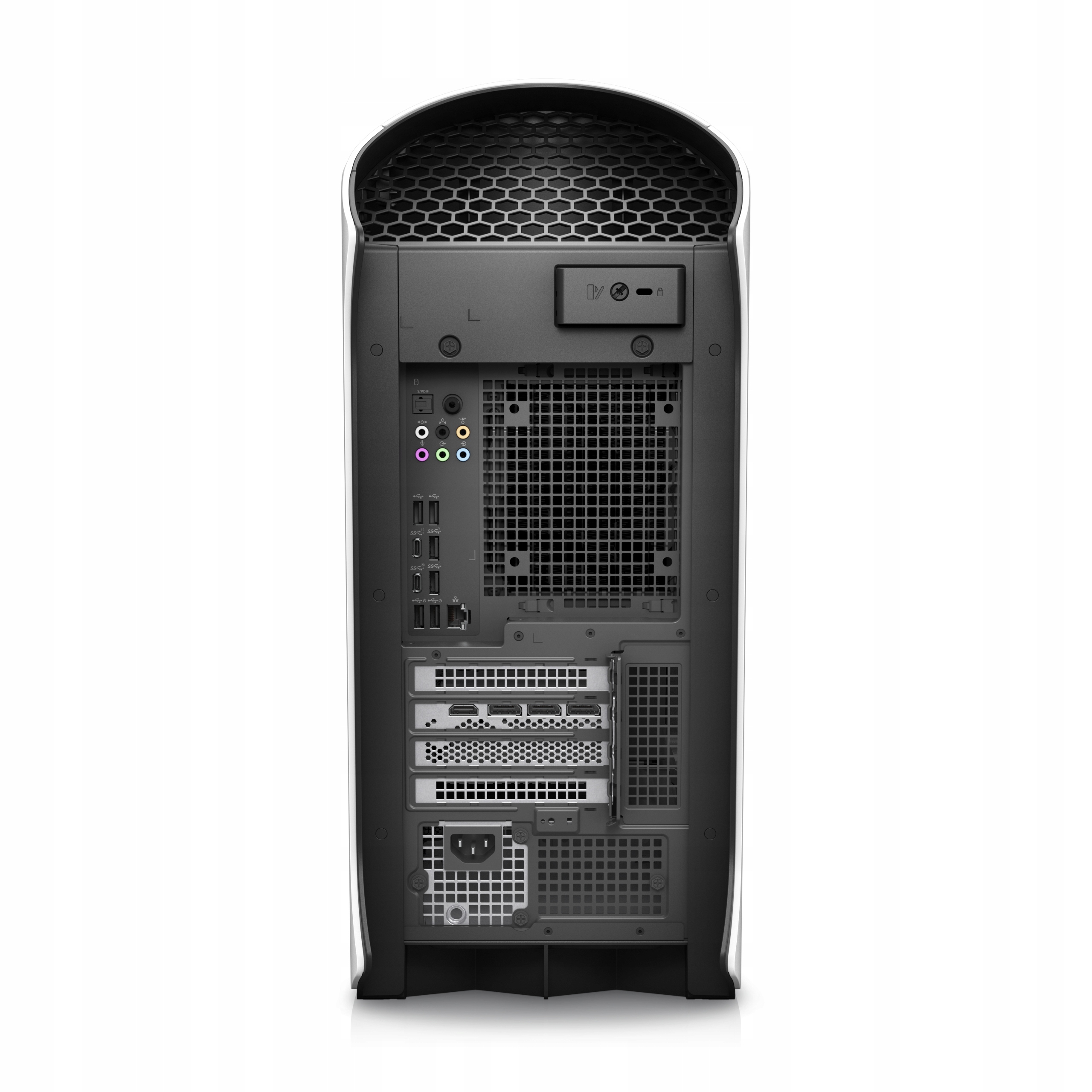 Aurora R13 имеет не только мощные компоненты, но и уникальный внешний вид. Новая конструкция имеет округлую форму, выглядит футуристично, а все это дополняется сотовой формой на передней панели компьютера, которая также служит дополнительной вентиляцией.