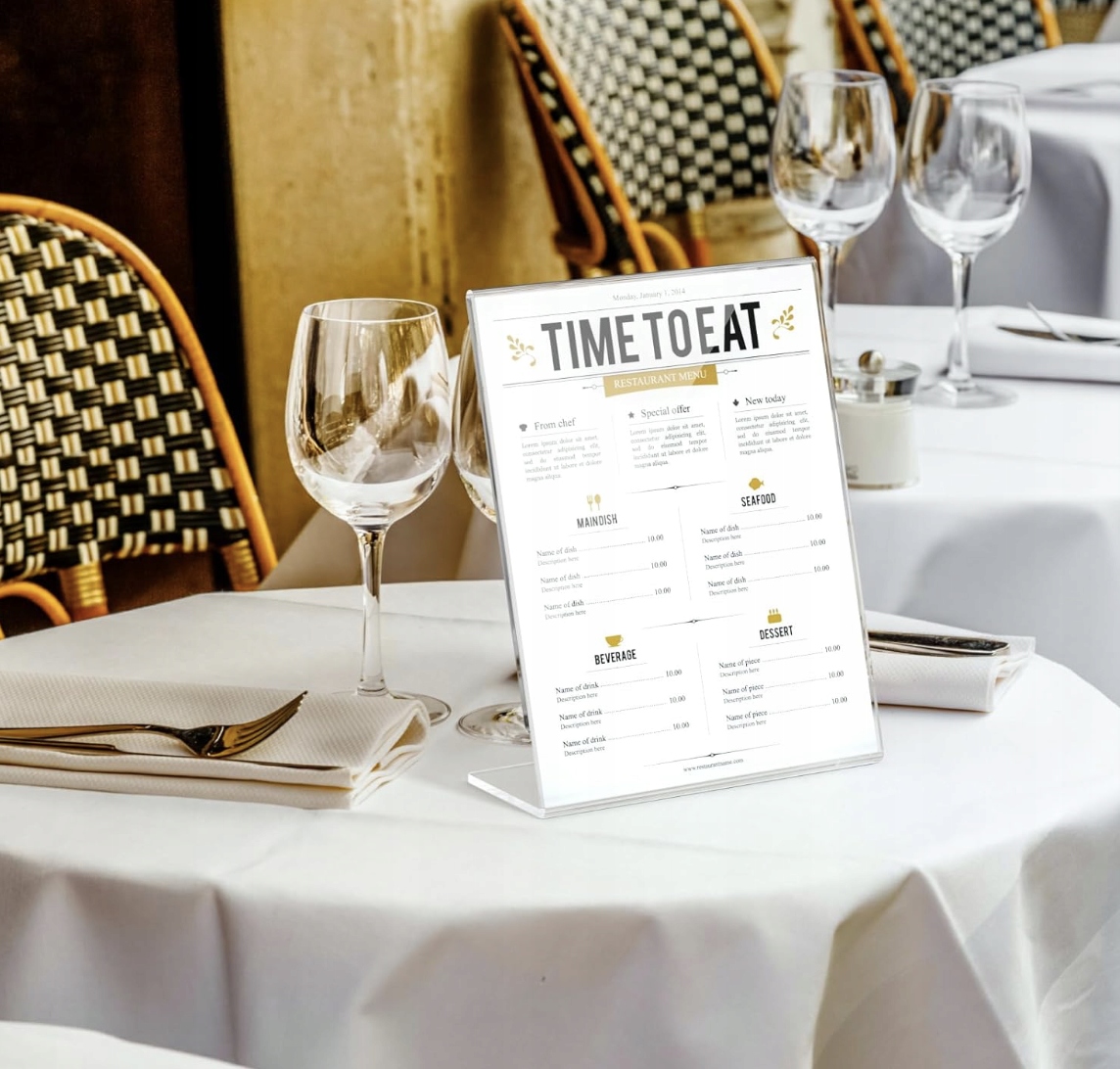 Подставки из прозрачного акрила прекрасно отображают меню, прайс-листы и рекламную документацию.