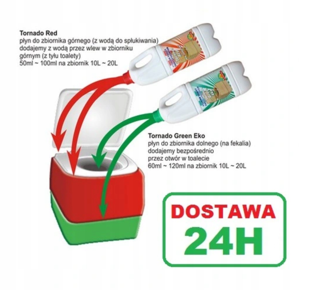 Tornado Green — концентрат 2л для ежедневного использования в фекалиях с антибактериальными и очищающими свойствами. Он разлагает бумагу и фекалии, а примеси выводятся в жидком виде. Продукт имеет документально подтвержденные чистящие свойства. Идеально подходит для караванов, коттеджей, кемперов, лодок и яхт.