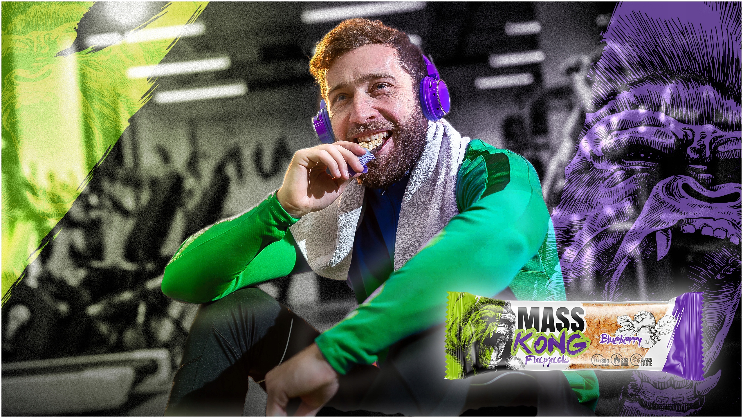 Hiro.Lab Mass Kong ФЛАПДЖЕК ЧОРНИЧНО-ВІВСЯНІ БАТОНЧИКИ
