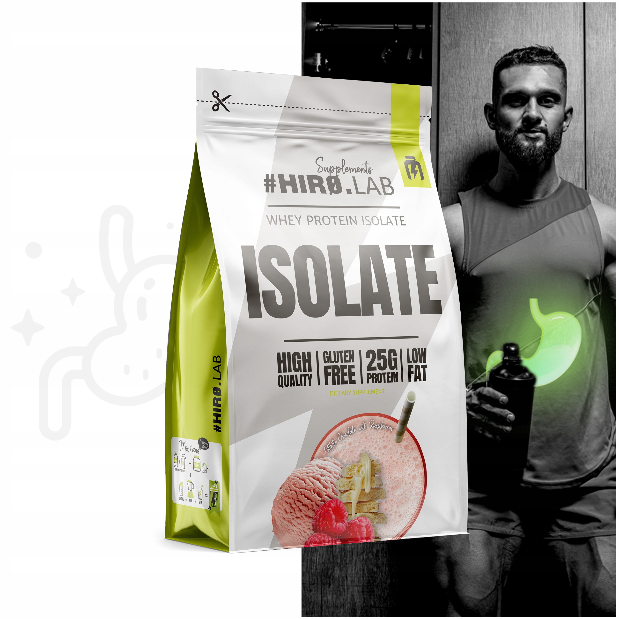 Болит живот после протеинового коктейля? Это не твоя проблема! Причиной дискомфорта пищеварения, сопровождающего употребление белковых добавок, является лактоза, которая часто вызывает спазмы желудка и метеоризм. Выбрав протеиновую добавку Hiro.Lab, эта проблема забудется! Если у вас есть проблемы с переносимостью питательных веществ, вам больше не придется отказываться от их употребления. Продукт от Hiro состоит как минимум на 80% из белка и небольшого количества лактозы, что обусловлено процесс микрофильтрации, очищающий белки от ненужных добавок. Как следствие, вы получаете только то, что вам нужно, не вызывая пищеварительного дискомфорта.