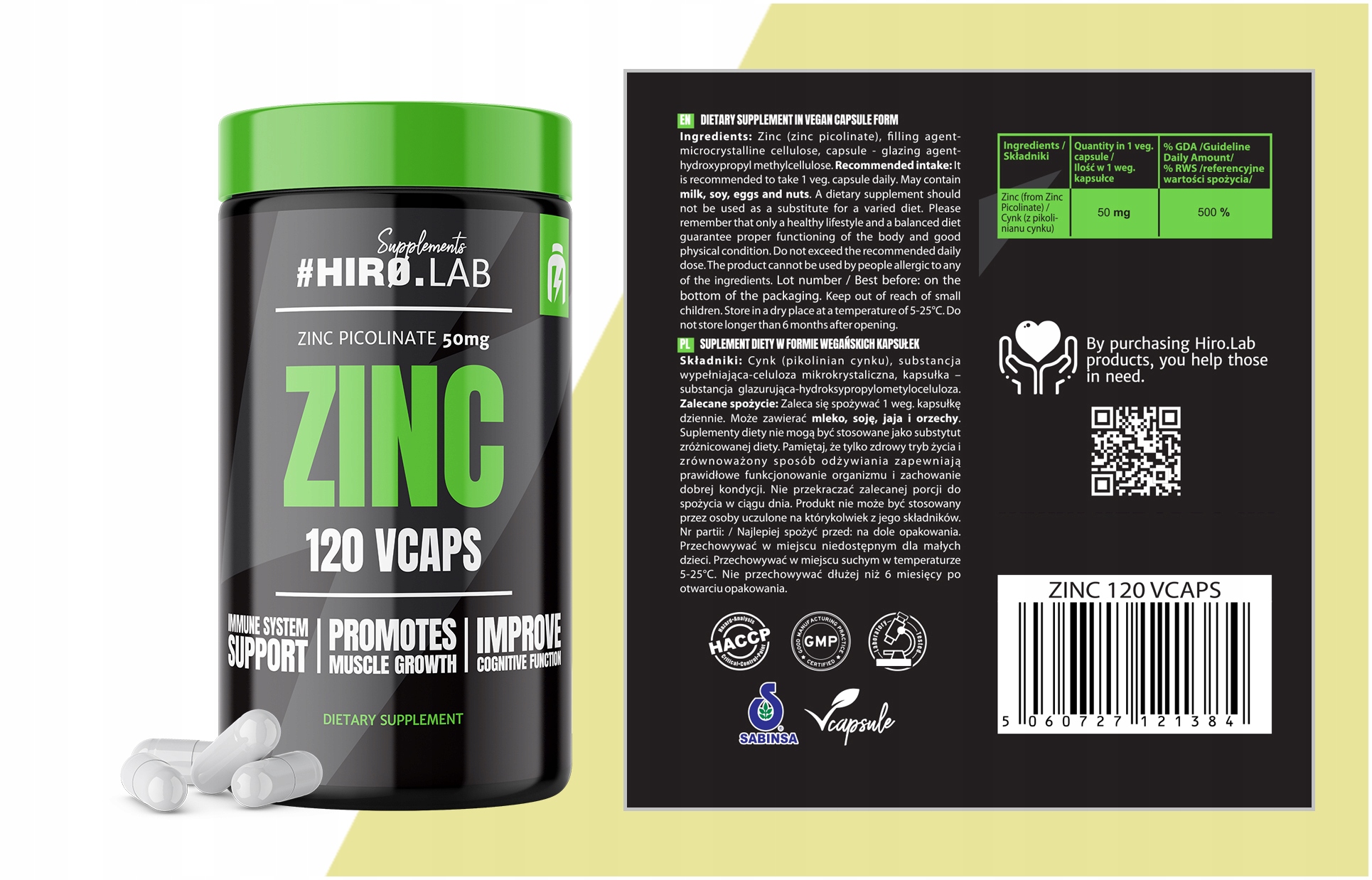 Hiro.Lab Zinc 120 капсул в капсулах ЦИНКА ТЕСТОСТЕРОНА ПИКОЛИНАТ