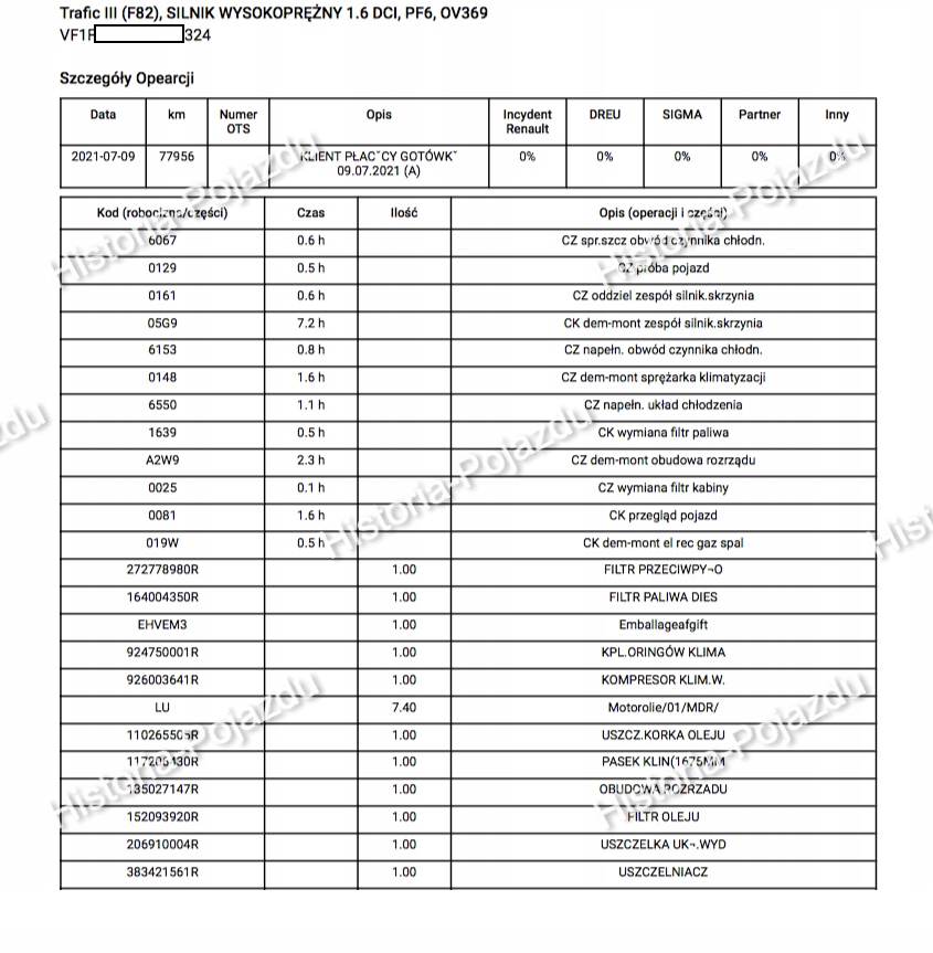 История обслуживания RENAULT Ремонт Дилерский центр DACIA Полная история проверки 7/7