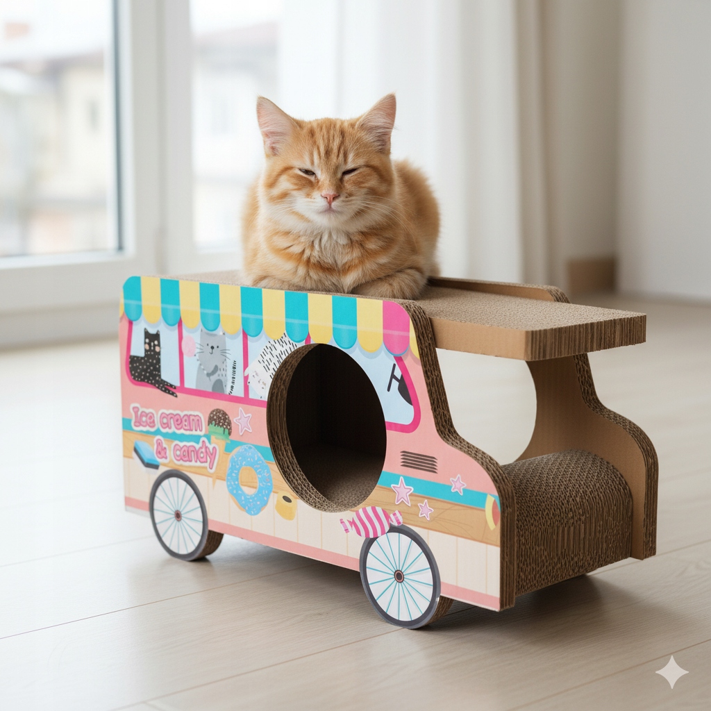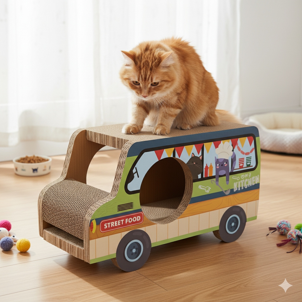 Эта уникальная когтеточка в форме автомобиля/автобуса представляет собой сочетание дизайна, функциональности и экологии.
