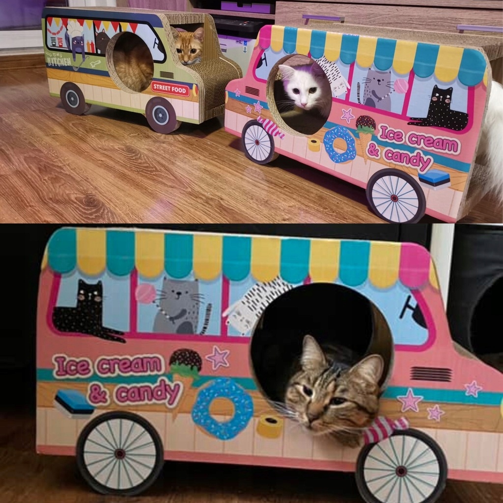 ➡️ Подарите своей кошке собственное транспортное средство — когтеточку, кроватку и игрушку в одном!