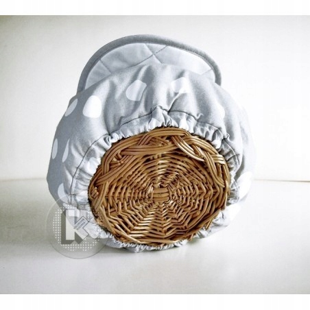 Его можно стирать и гладить. Диаметр корзины - 24 см, высота - 9 см. Если вы используете другую корзину, обратите внимание на ее размеры, чтобы курица не потеряла своих пропорций и функциональности. На фото показаны отверстия (под крылышками), которые используются для вставки и удалить содержимое контейнера. Внизу KURA застегивается на резинку в тоннель, заканчивающий отверстие, через которое можно снять корзину.Продается с корзиной или без.В наличии в широкой цветовой гамме!