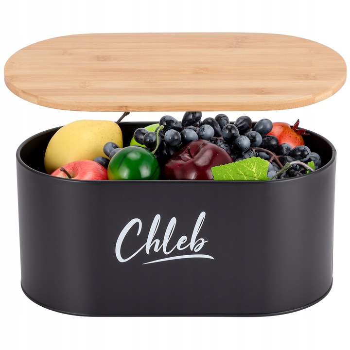 СТИЛЬНЫЙ МЕТАЛЛИЧЕСКИЙ КОНТЕЙНЕР ДЛЯ ХЛЕБА, НАБОР ЕДА, ЧЕРНЫЙ + РАЗДЕЛОЧНАЯ ДОСКА